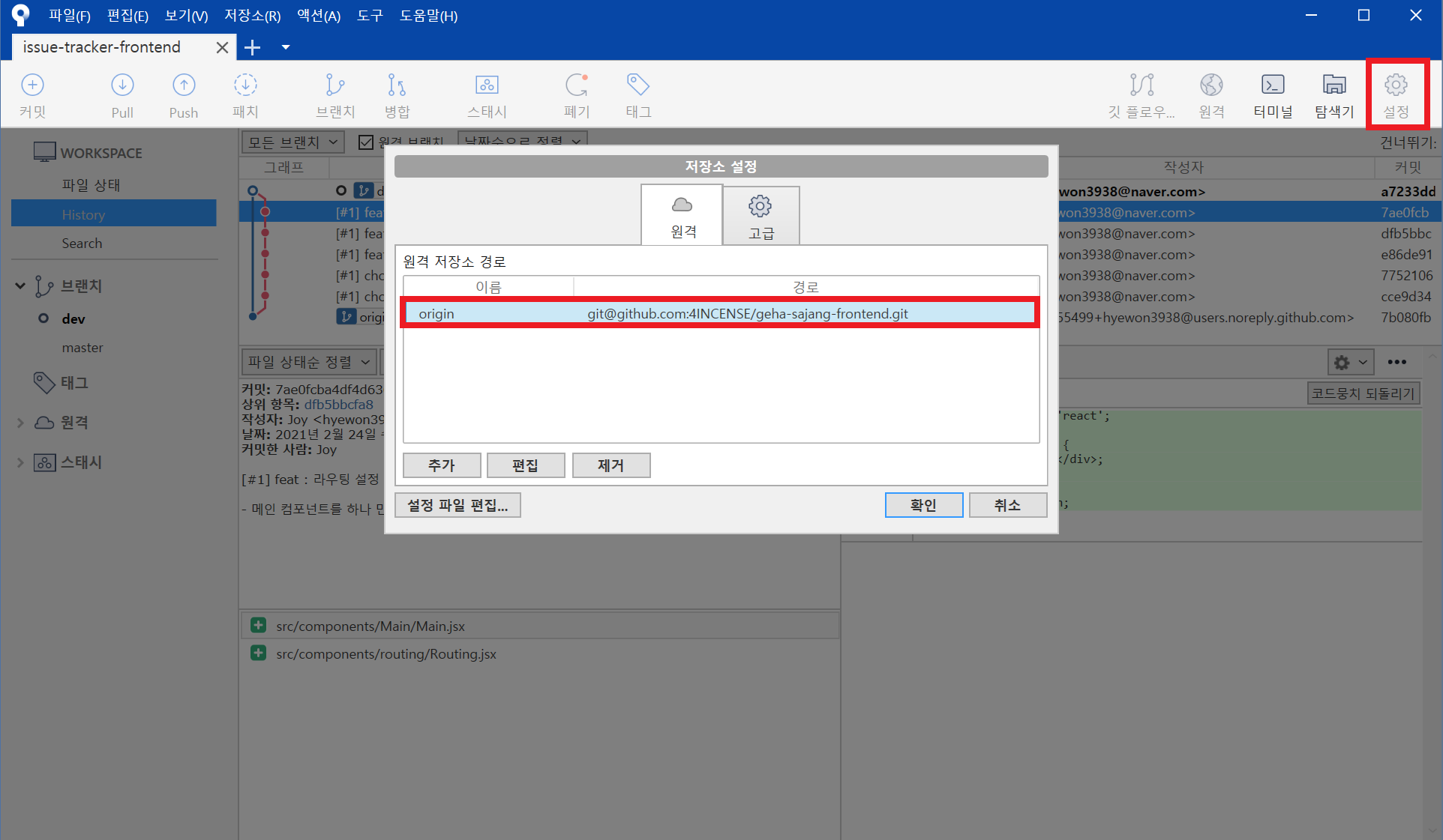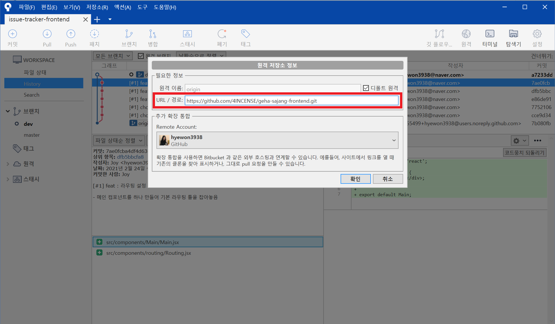 그리고 다시 소스트리 설정으로 돌아와 경로를 더블클릭하고 복사해온 HTTPS경로로 저장소 경로를 수정해주면 해결!