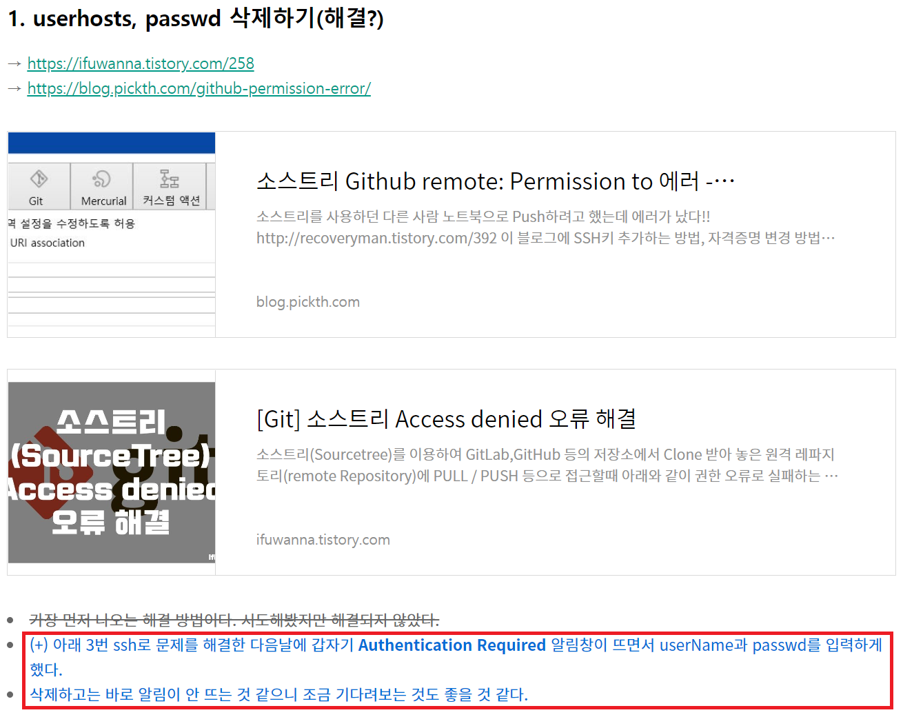 전에 포스팅했던 해결 방법 중에 첫 번째 해결 방법인 userhosts, passwd 삭제하기 방법...!