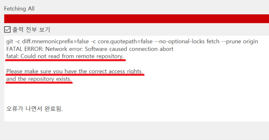 갑자기 저장소를 읽을 수 없다며 저장소가 존재하고 있는지 확인해달라고 한다