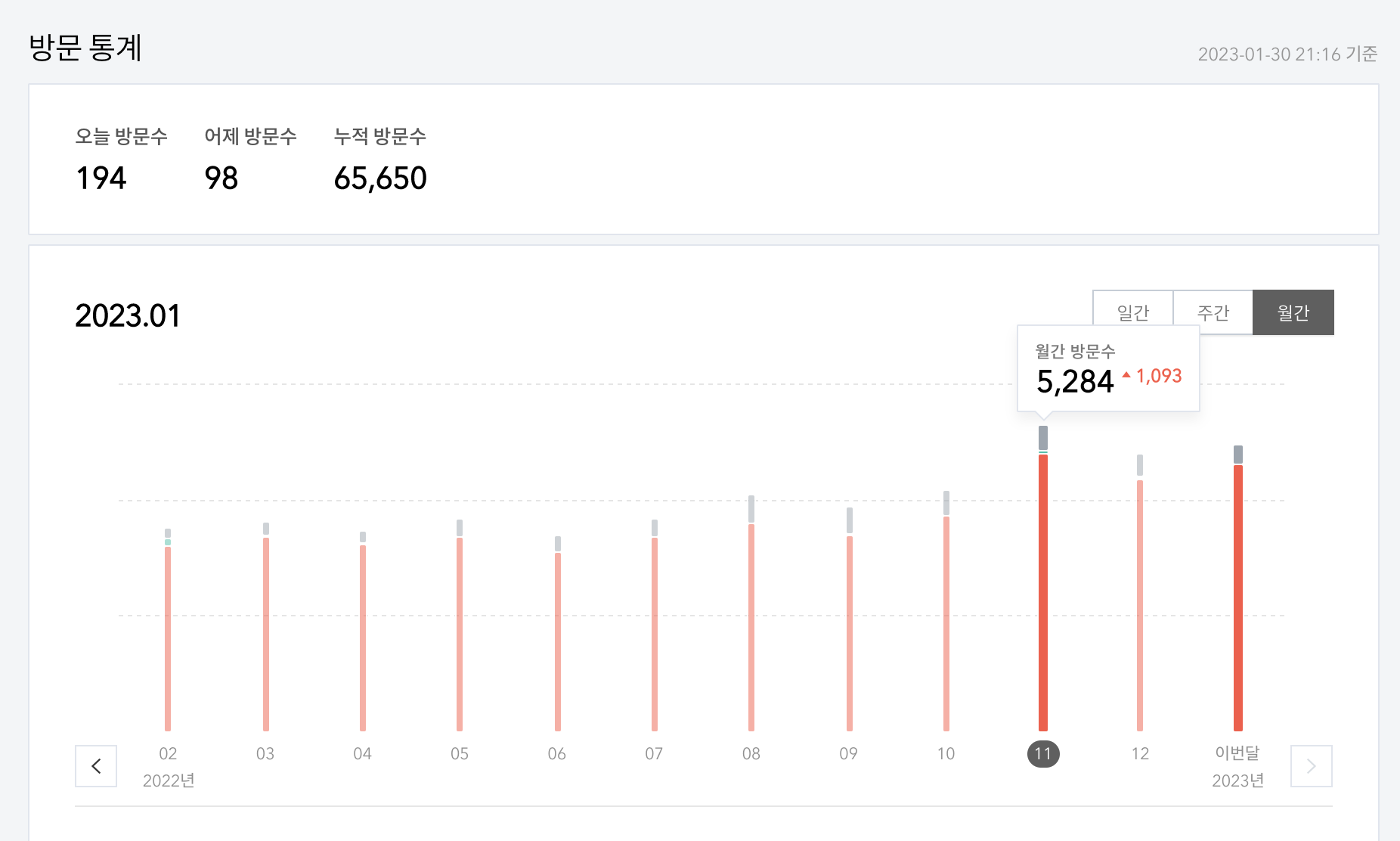 꾸준히 검색을 통해 2023년 1월 기준 하루에(평일 기준) 약 200명 정도가 방문하고 있다.