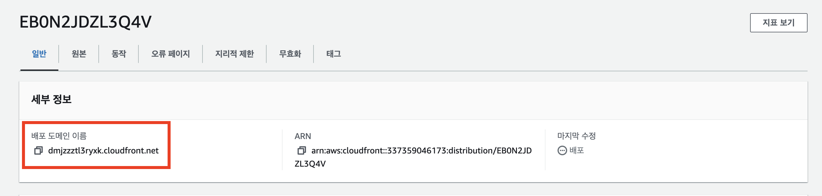 3-5. 이제 다시 아까 배포해 두었던 CloudFront의 배포 상세 페이지로 이동해 설정 옆 [편집] 버튼을 클릭한다.